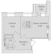 33 Л дом, 1 подьезд, 3 этаж, 2 комнаты