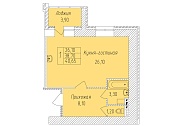 33 Л дом, 1 подьезд, 1 этаж, 1 комната
