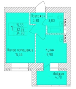 33 Л дом, 2 подьезд, 7 этаж, 1 комната